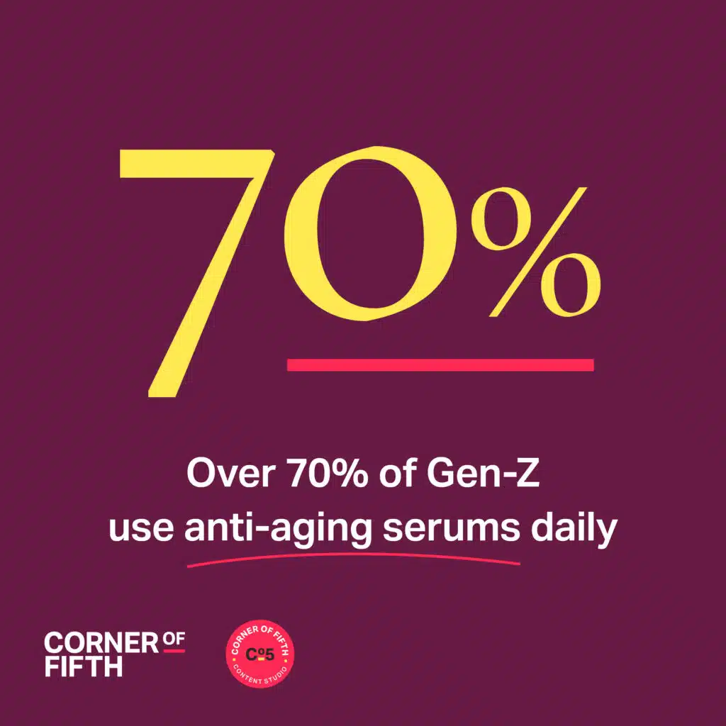 Believe it or not, Generation Z is deep into anti-aging formulations. Over 70 percent of this demographic use anti-aging serums daily.