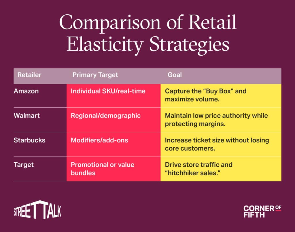 Using elasticity-based targeting to manage its premium brand status without alienating customers. Rather than a flat 5% increase on all drinks, they use AI to identify which specific modifiers (like oat milk or extra shots) are price-inelastic. As a result, they can raise prices on these add-ons because loyal customers are less likely to change their behavior over a $0.50 increase on a custom latte than they are on the base price of a drip coffee.
